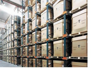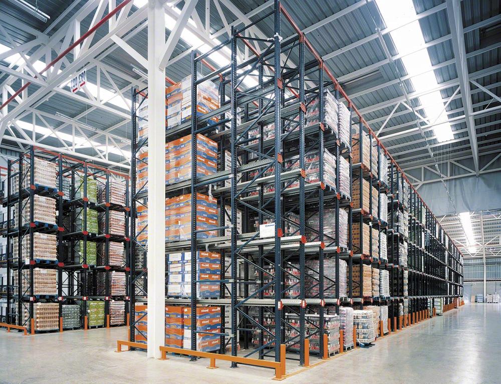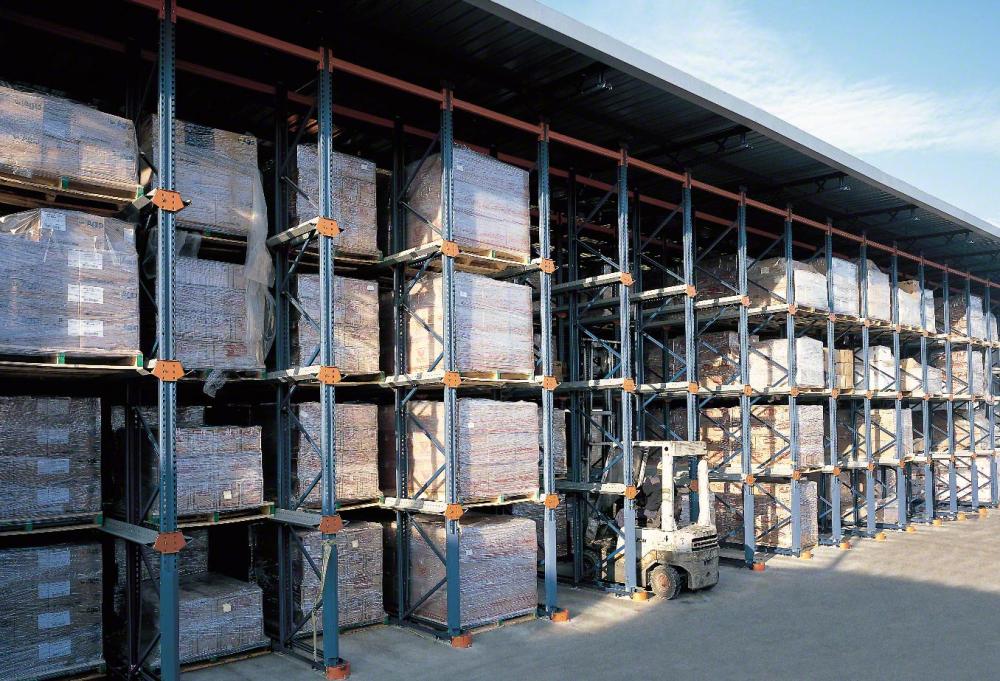 Todos los niveles de cada calle deben alojar la misma referencia, por lo que resulta idóneo para almacenar muchas tarimas de productos homogéneos con baja rotación.
